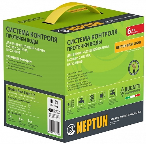Система контроля протечки воды Neptun Base Light предназначена для установки в квартиры с газовой колонкой, где подведено только холодное водоснабжение (в комплекте один кран). Система заблокирует подачу воды до устранения причин протечки и проинформирует о возникшей аварии звуковым и световым сигналами.