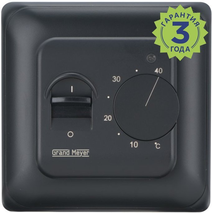 Механический терморегулятор Grand Meyer MST-10 предназначен для электрических теплых полов и других электрических нагревательных элементов. Корпус оснащен световым индикатором работы и изготовлен из самозатухающего ПВХ. Регулировка температуры осуществляется в диапазоне от +5 до +40 °С. Терморегулятор Grand Meyer MST-10 устанавливается в стандартную монтажную коробку. Комплектуется датчиком температуры пола NTC.
