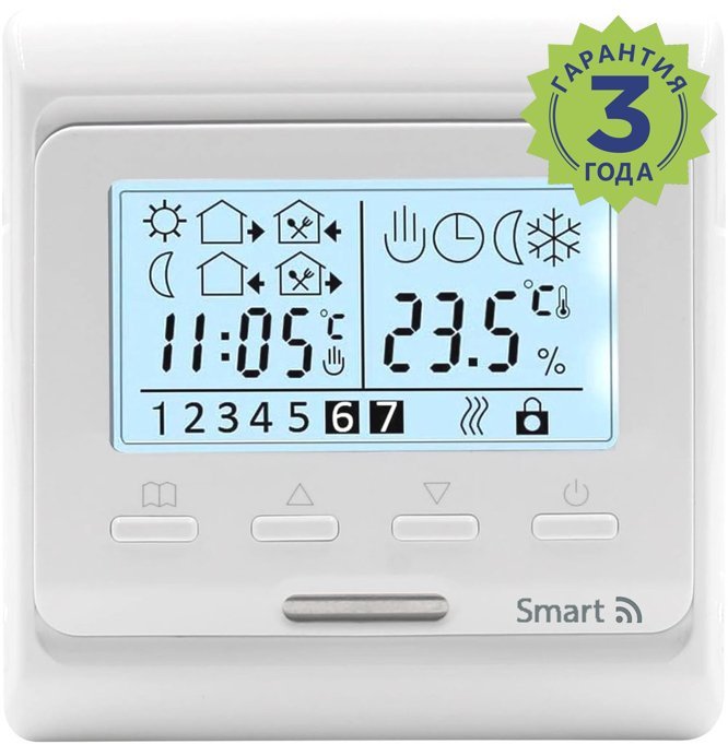 В наличии Есть Тема форума для комментариев 223 Количество комментариев к элементу 1 Тип Программируемый Управление Кнопочное, Беспроводное, Экран Датчик температуры пола Цифровой Монтаж Скрытый (внутренний), Накладной (наружный) Длина провода выносного датчика, м 3 Диапазон температур от +5 до +45С Максимальный ток нагрузки 3600вт Класс защиты корпуса IP20 Максимальная мощность нагрузки 3.6 квт Количество интервалов в сутки Недельный 5+2/6+1/7 дней. Защита от замерзания да Ручной режим да Блокировка от детей есть Ограничение температуры пола есть Адаптивная функция да Количество программ 7 Цвет белый -
