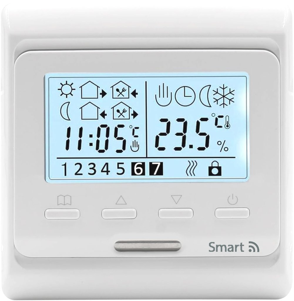 Grand Meyer HW900 Wi-Fi, программируемый терморегулятор с функцией удаленного доступа Wi-Fi для управления отоплением электрического типа. Возможность программируемого, а также ручного управления. Возможность установки недельного периода 5+2/6+1/7 дней. Установка в стандартную монтажную коробку. Память настроек при отключении питания. Огнезащитный пластик. NTC датчик. Диапазон установки: от +5°C до +35°C (заводские).